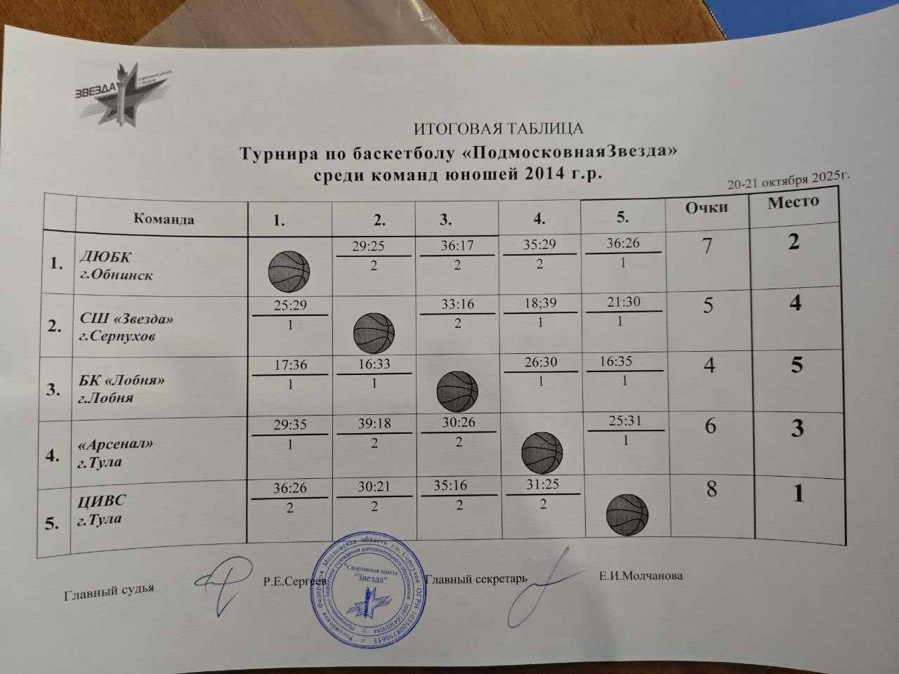 Осенние дни, 20-21 октября, в городе Серпухов стали настоящим праздником баскетбола! Турнир "Подмосковная Звезда" собрал талантливых юношей 2014 года рождения из разных регионов. Атмосфера соревнований была накалена до предела: дриблинг, мощные броски и командный дух наполняли воздух арены. Участники из Обнинска, Серпухова, Лобни и двух команд из Тулы показали высокий уровень мастерства, превратив турнир в захватывающее зрелище для зрителей и болельщиков.