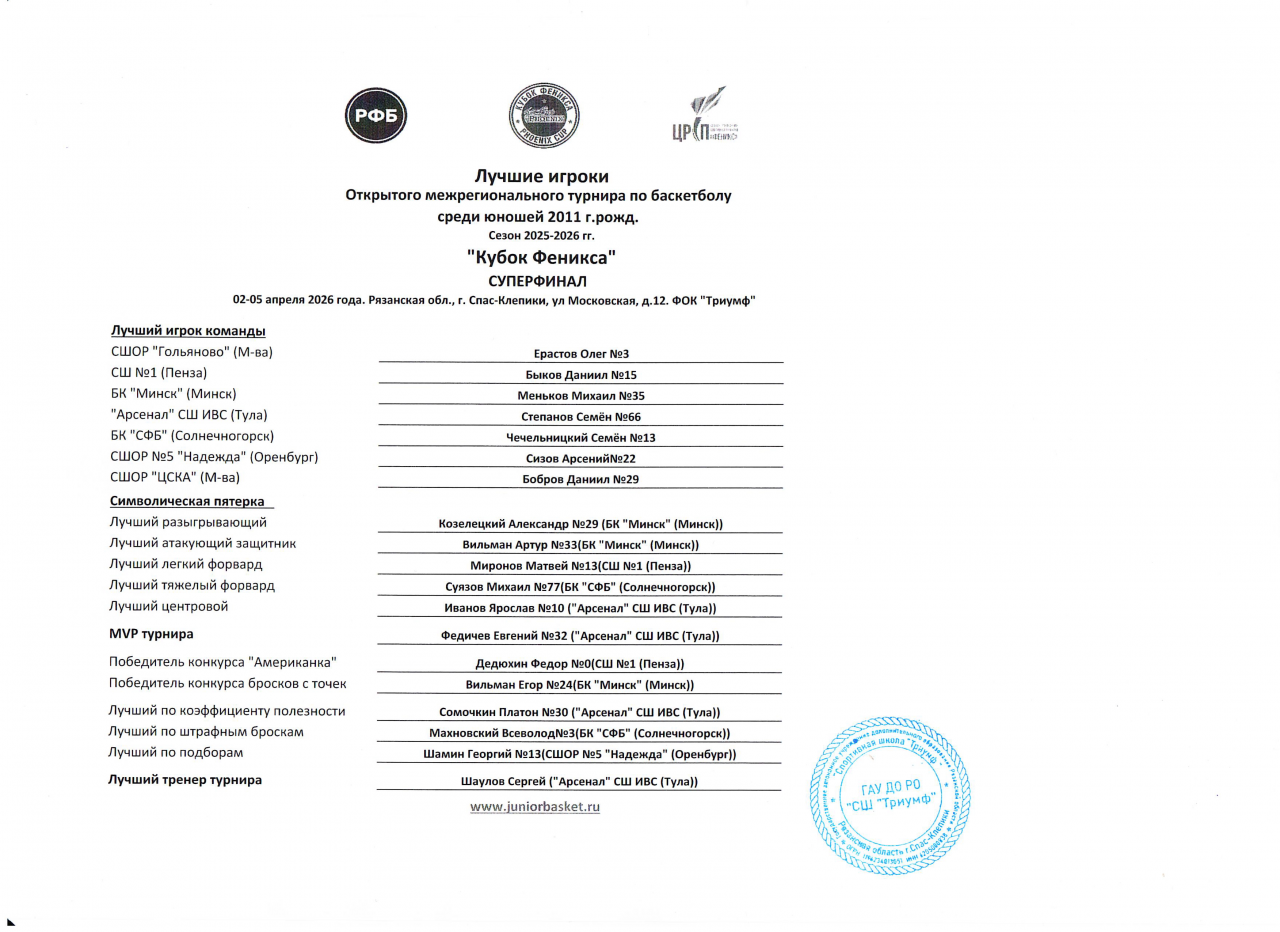 «Кубок Феникса» в очередной раз доказал, что юношеский баскетбол в России развивается в правильном направлении. Турнир в Спас-Клепиках открыл новые имена и подарил болельщикам массу ярких эмоций. А тульская СШ «Игровые виды спорта» вписала своё имя в историю соревнований как новый чемпион, задав высокую планку для будущих сезонов.